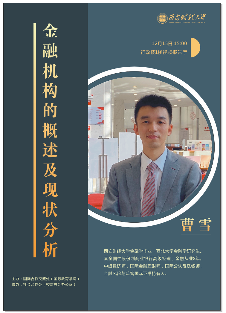 国际合作交流处(国际教育学院)学术报告:金融机构的概述及现状分析